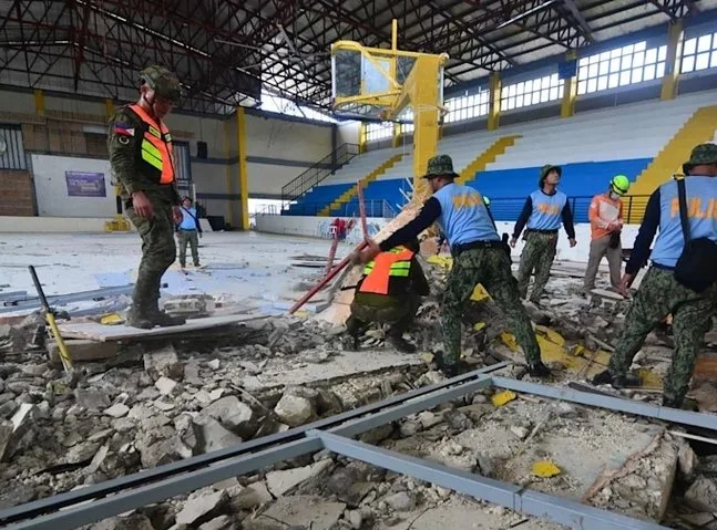 El terremoto también hizo que un complejo deportivo colapsara en el norte de Cebú durante un juego de baloncesto, donde varias personas fueron reportadas muertas y heridas.