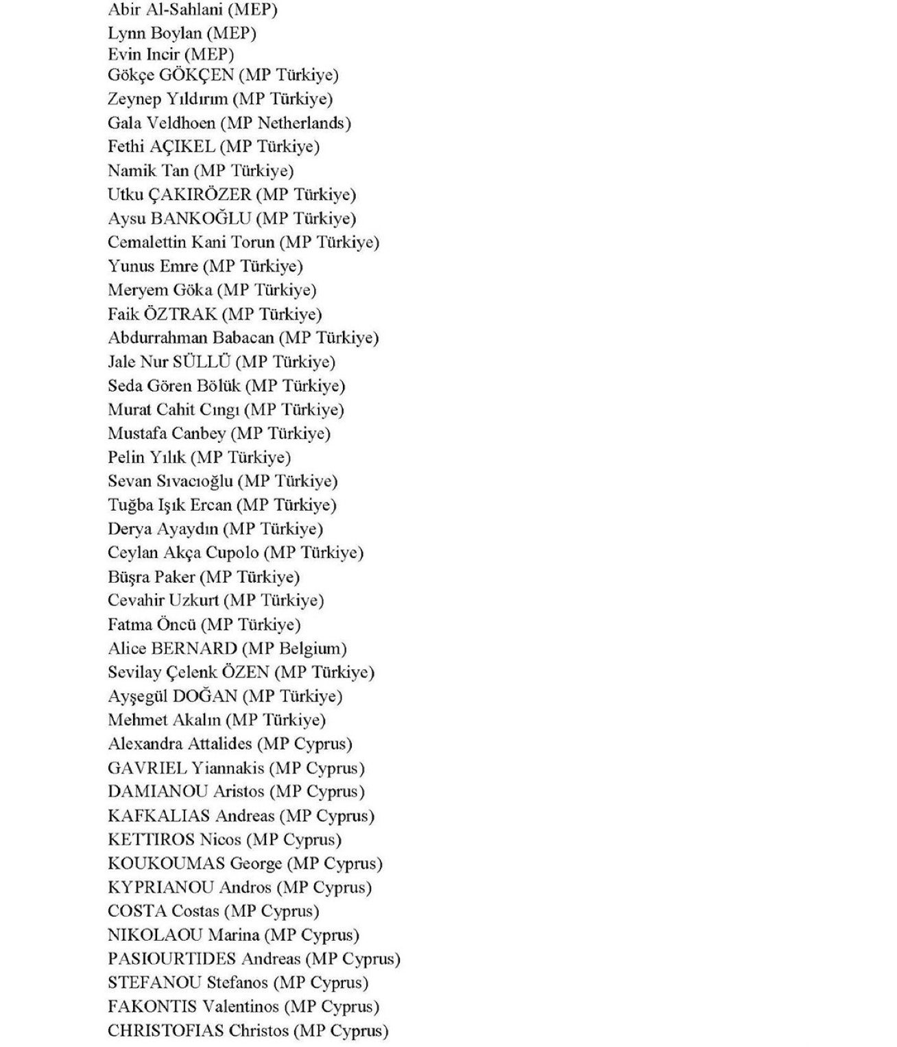 Entre los firmantes se encuentran miembros del Parlamento Europeo, miembros del Parlamento de Türkiye y varios países europeos, que están representados en la Asamblea Parlamentaria del Consejo de Europa.
