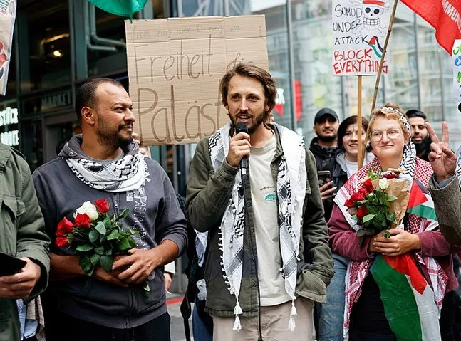 Miles de manifestantes marcharon hacia la calle donde se encuentran la Oficina del Canciller, el Ministerio de Asuntos Exteriores y el Palacio Presidencial, pidiendo el fin del genocidio en Gaza y que se sancione a Israel.