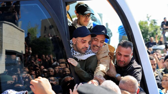 Los prisioneros palestinos liberados de Israel han sido recibidos por grandes multitudes en la ocupada Cisjordania, cuando el lunes tuvo lugar un intercambio de prisioneros y cautivos como parte del acuerdo de alto el fuego en Gaza.
