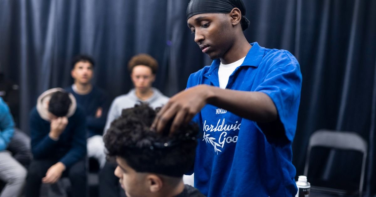 “Quiero tener el pelo como Garnacho”, dice un joven sosteniendo una foto del futbolista en su móvil. El peluquero corta un “desvanecimiento cónico” y el niño parpadea felizmente ante la cámara.
