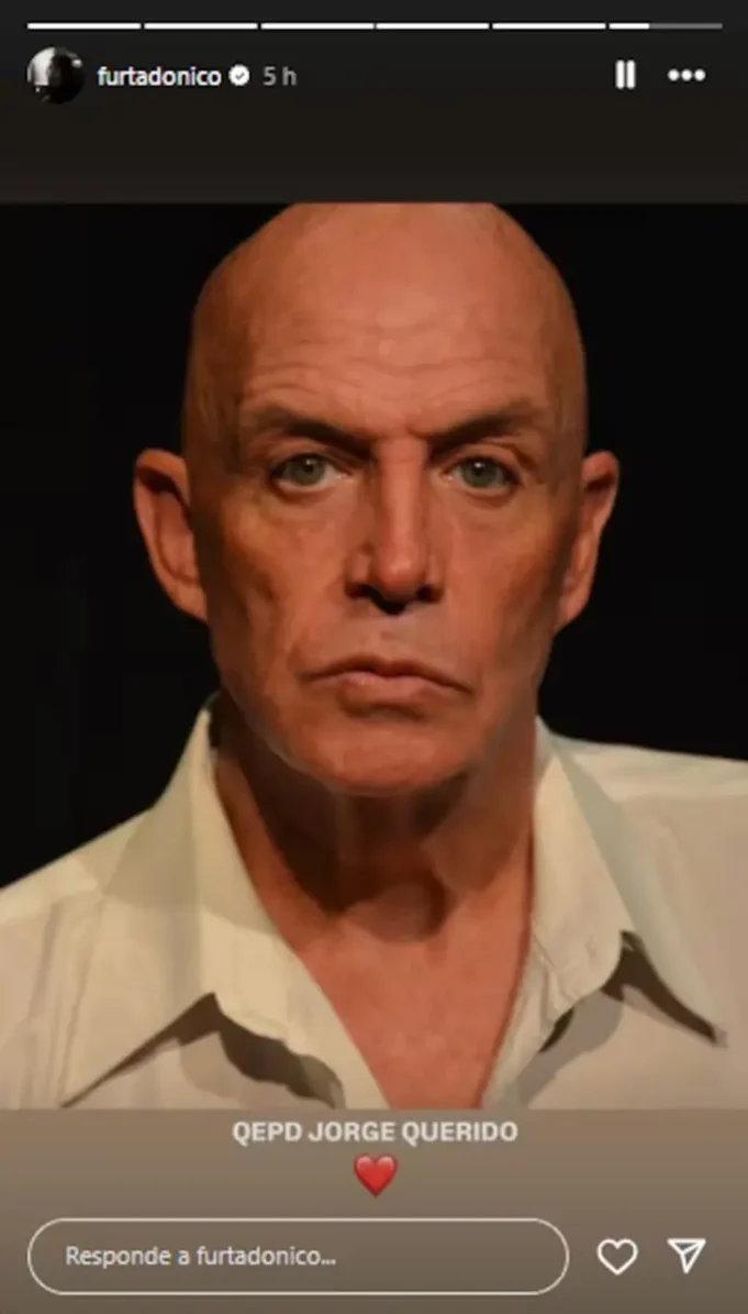 Al conocer la noticia, Nicolás Furtadoquien interpretó a Juan Pablo “Diosito” Borges, en El marginal, compartió en sus historias de Instagram una foto de Lorenzo y a modo de despedida escribió: “Que en paz descanses, Jorge querido”, junto al emoji de un corazón rojo.