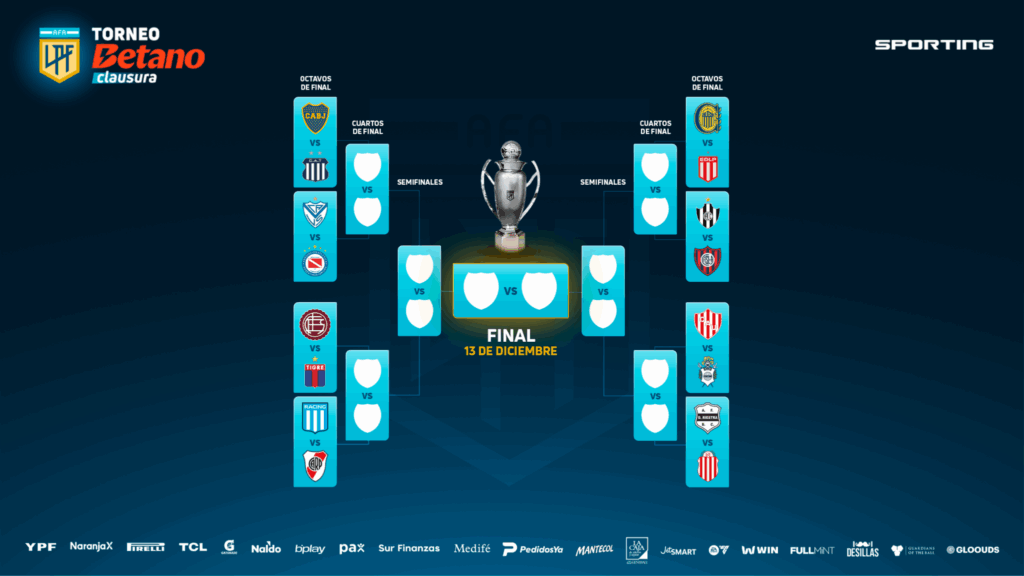 La Liga Profesional confirmó oficialmente los días y horarios de los Octavos de Final del Torneo Clausuraque se disputarán entre el sábado 22 y el miércoles 26, con cruces atractivos y varios clásicos recientes reeditados. Así quedó diagramada la agenda completa: