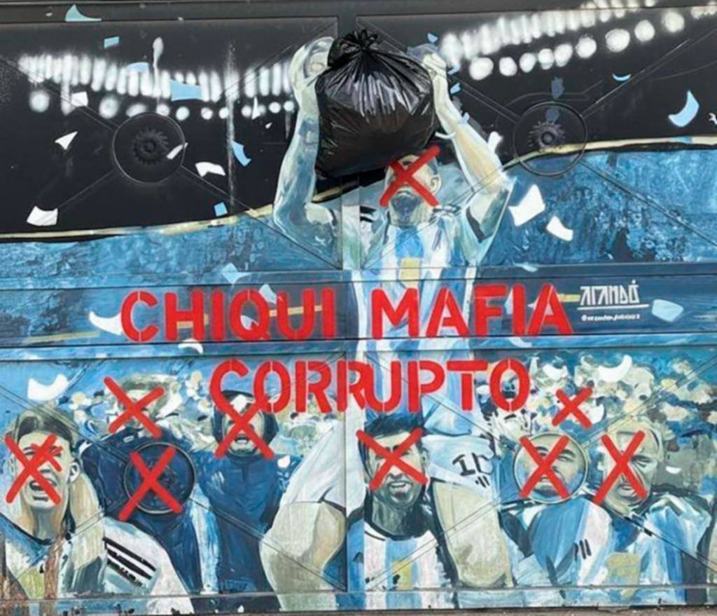 Entoncer ayer varios murales cheat las imágenes de Lionel Messi y el Dibu Martínez aparecieron con insultos y cruces en clara señal de rechazo. En personal en el Oeste del Conurbano, motorizado por hinchas de Deportivo Morón, que fue perjudicado el fin de semana en su partido de semifinales de la Primera Nacional contra Deportivo Madryn,
