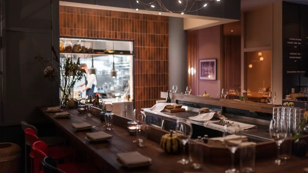 Escapamos del ajetreo otoñal una tarde de octubre y nos sentamos en la barra en forma de U, en el centro de la sala. Es animado y de ritmo rápido, como si te transportaran a un mundo más allá de las tranquilas calles de Östermalm.