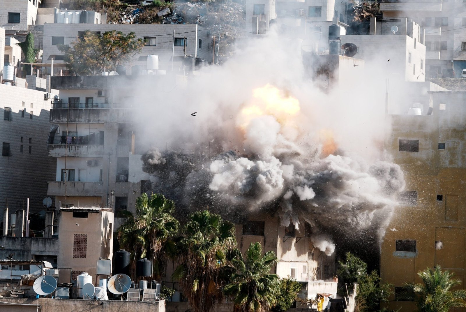 Las tropas evacuaron 13 casas alrededor del edificio en la ciudad de Nablus y una columna de humo se elevó después de que la casa fuera destruida.