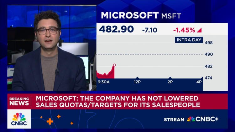 Un portavoz de Microsoft dijo que la compañía no ha reducido las cuotas de ventas ni los objetivos para sus vendedores.
