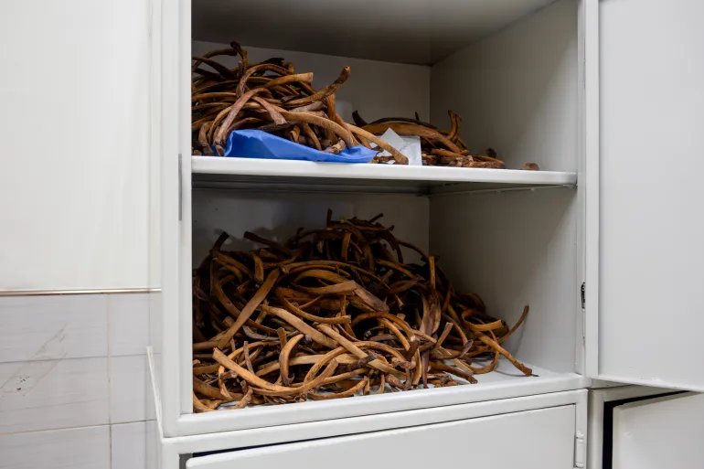 Un mueble está enteramente dedicado a las costillas. Otro contiene calaveras.