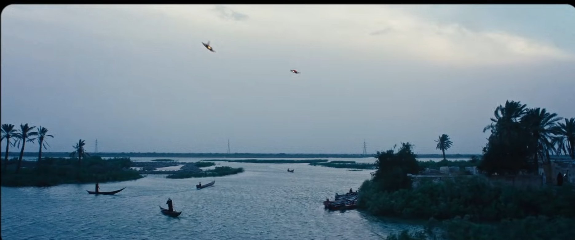 A pesar de que es una película ambientada en tiempos de guerra, la belleza del paisaje natural es fascinante y me doy cuenta de que estoy viendo una película sobre la guerra de Irak, hecha por iraquíes, sobre iraquíes, por primera vez. Quiero borrar todas las imágenes de Irak que he visto a través del cañón de las armas estadounidenses en las últimas dos décadas. Quiero borrar todas las palabras que he leído sobre Irak por parte de expertos “internacionales”, entre ellos Rory Stewart, quien hizo carrera “gobernando a los árabes de los pantanos”.