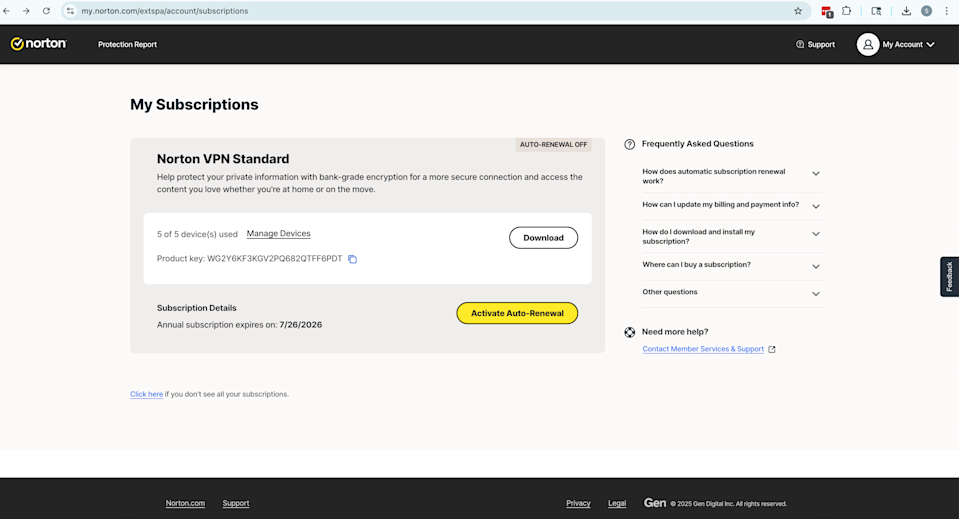 La forma más sencilla de cancelar Norton VPN es evitar que su suscripción se renueve automáticamente. De esa manera, tendrás hasta que caduque tu plan para buscar una nueva VPN. Tenga en cuenta que los pasos a continuación son los mismos sin importar cómo obtuvo Norton VPN, ya sea solo o como parte de Norton 360, aunque solo se aplican si se suscribió a través del sitio web de Norton, no de una tienda de aplicaciones.