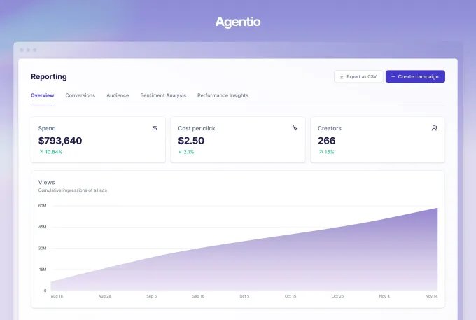 La compañía dijo que dado que muchos creadores de Agentio ya tienen presencia en redes sociales como Instagram, ha podido escalar las campañas más fácilmente. En 2026, planea admitir más plataformas como TikTok y Snap.